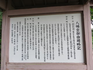江戸時代宿駅制度の確立。坂本宿の設定により宿駅の上なる小高い丘、現在の地に近郷に祭祀せる諏訪神社、白山神社、八坂神社、水神、菅原神社、大山祇神社等を合併合祀すという。大正3年村社に指定。昭和21年神社制度の改革により神社本庁所属。昭和28年1月24日宗教法人認承。宗教法人八幡宮となる。