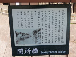 「吉蘇古今沿革志」 に 「関門下の橋を筏橋と言う。福島上味(うわみ)の橋、先年筏越にて満水の時分通路ならず、承応二巳年(1653)橋懸けりても筏橋の名存せり」 とある。 筏橋は、筏を連ねて浮橋としたものである。明治44年、昭和8年、昭和41年に架け替えられ 「関所橋」 と改められた。 その昔、福島祭の神輿がこの付近の川を渡ったことから、欄干はその擬宝珠を象っている。