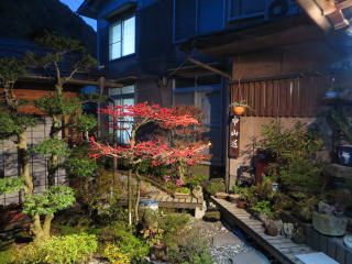 山蒼く 暮れて夜霧に 灯をともす 木曽福島は 谷底の街