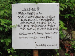 佛教の六観音の一つ。宝馬が四方を駆け回って敵を威伏するごとく、一切の諸魔をくじき伏する威力を表したもの。悪人、怨家降伏のための修法の本尊。民間では馬の無病息災を祈る。 (細久手長寿クラブ)