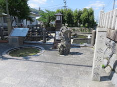 美江寺大門交差点の右手筋を入って行くと、浄土宗西山派の亀頂山瑞光寺がある。境内にある芭蕉句碑をはじめとした瑞光寺句碑群と美江寺宿本陣の主の山本友左坊之墓は瑞穂市指定史跡となっている。 | 街道右手の酒井電気サービスのところに自然居士之墓標柱が建っており、路地を入って行くと五輪塔がいくつか並んでいるが、どれが自然居士之墓かは説明が無い。 自然居士は、和泉の国(大阪府)に生まれ、京都の東福寺大明国師に師事したが、奇行遊行の僧侶であったという。 |