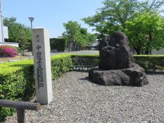 子安神社から街道に戻ると 「子安神社・化石館」 の案内板の手前に所郁太郎生誕地碑が建っている。 赤坂本陣公園に所郁太郎の銅像が建っているが、美濃国赤坂で生まれ、医者の所伊織の養子となり、憂国の士の精神的支えとなった梁川星巌と親交があった。 |