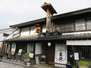 庵看板と杉玉の下がった酒造 「岡崎商店」