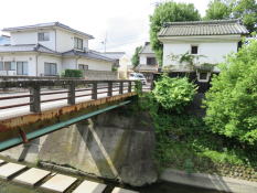 直ぐ先の街道右手に気抜き屋根の付いた名主「坂田家」 がある。 | 坂城郵便局の先で日名澤川に架かる大橋を渡って大門町に入ると旧家が建ち並んでいる。 |