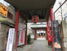 参道右手の権堂アーケード入口近くに往生院がある。往生院は大同2年(807)弘法大師が善光寺参詣の折り、ここに寶乗寺を創建したのが始まりである。建久8年(1197)源頼朝が善光寺再建を発願し、その時に善光寺如来を往生院に移して仮堂とた。仮の御堂を権堂と言うことからこの辺りを権堂町と呼ぶようになったという。境内には県内最古の弁財天がある。 | 権堂のアーケードを権堂駅方向に進むと左手に秋葉神社がある。アーケード脇には勢獅子(きおいじし)といわれる30数㎏の獅子頭が置かれている。 境内奥には、料理・包丁の神を祀る四条霊社があり、その傍らに国定忠治の墓がある。 |