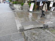 一対の常夜燈の手前に石橋の駒返り橋がある。 建久8年(1197)源頼朝が善光寺に参詣した折り、馬の蹄が石橋の穴に挟まってしまい、ここから奥は馬を返して徒歩で入ったと言われている。 |