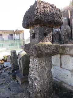境内には10万年前の貝化石の灯籠が2基、3鈷を乗せた墓石の供養塚、講中連や船頭衆 から奉納された石塔類が多く有ります。