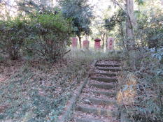 | 坂道を更に登っていくと、左手の林の中に赤く塗られた庚申塔が8基並んでいる。 古いものは、宝永3年(1706)の庚申待成就塔、延享3年(1746)・宝暦5年(1755)の一面六臂の青面金剛の庚申塔で、新しいものは平成6年(1994)の文字庚申塔まである。 |