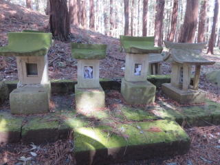 県教育委員会による平成25年度の調査で、墳丘から埴輪が出土しなかったため、埴輪は並べられていなかったと考えられます。昭和3年に社殿を改築した際、石室のあると想定される位置(前庭部)の南側付近から図示した須恵器の器台やハソウなどが出土しています。