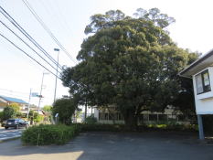 学園都市南入口交差点で国道408号線を越えると、右手に一本の巨木が立っている。 この巨木は、推定樹齢250年、樹回り4.4m、樹高15mのスダジイである。ここ猪子の集落は、江戸時代の元禄期(1688-1703)に今の位置に移ったもので、陸前浜街道(旧水戸街道)にあるこの木は、いつも緑をたたえ、山の神を祀った御神木として代々伝えられ、明治中期の大火の際には、ここで火をくい止めたと言われている。 |