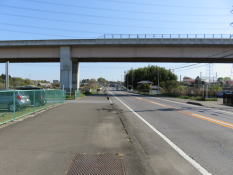 東京から54㎞ポストを過ぎて先に進むと、首都圏中央連絡自動車道(圏央道)の高架が横切っている。 高架下には小野川に架かる小野川橋があり、左手には水田が広がっている。小野川は、つくば市に源を発し、牛久市を縦断して、下流で霞ヶ浦に注いでいる。また江戸時代には、年貢米や薪炭を江戸に運ぶ水運として発達し、重要な交通の要衝であった。 |
