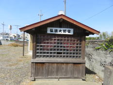 街道左手の土浦市消防団第22分団建屋の奥に地蔵堂があり、土浦市指定文化財の地蔵菩薩が祀られている。 地蔵堂の傍らには弘法堂があり、一体の弘法大師像が祀られている。 |