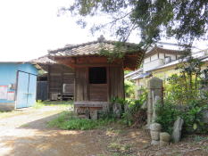 | 観音寺の直ぐ先で県道53号線を越えると、街道が右に曲がるところの右手に御堂が2つあるが、廃寺のようである。 手前の御堂横の植栽のところに、宝永・寛政などの如意輪観音を刻んだ十九夜塔などの石造物がある。 |