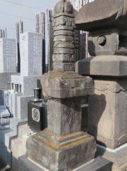 塔身に 「宝生如来、阿弥陀如来、不空成就如来、阿閃如来」 の梵字が刻まれており、江東区内最古の石造物で江東区重要文化財に指定されている