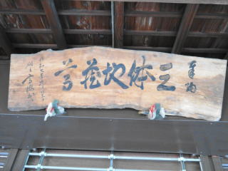 御堂に掛かる三体地蔵尊の扁額