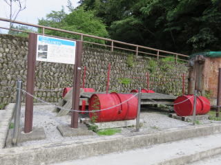 コンクリートを運搬するために使用する容器をコンクリートバケットと呼びます。展示のコンクリートバケットは、小河内ダムの建設で実際に使われたもので、1回の運搬で6㎥のコンクリートを運びました。