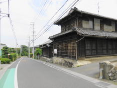 | 成満寺の先で右に曲がると、右手に連子格子の立派な旧家がある。 街道は、この旧家の前を左に曲がって杖衝坂へと延びている。 |