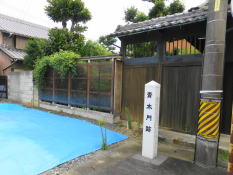 街道に戻り信号十字路の先を進むと、連子格子の旧家が左右に建っている。 これらの家には、「きりや跡」 「みかわや跡」 「まつばや跡」 「なべや跡」 「おけや跡」 などの屋号が掛かっている。 |