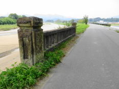 | 東名阪自動車道高架の下には、桜川に架かる昭和8年(1933)竣工の大岡寺畷橋がある。 大岡寺畷橋を渡ると、左手は鈴鹿川が流れ、右は黄金色の田圃が広がっており、吹きさらしの土手道である。 |