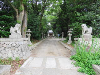 神橋の先に狛犬・石燈籠の建つ参道が延びる