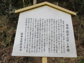 この牛塔は関寺建立の際、工事を助けるために現れた 「霊牛」 を供養するために建てられたといわれる日本で最古最大の宝塔で、芸術上からも立派な重要文化財である。その他残る物とて何一つないが、かえって老女小町の隠棲地にはふさわしくさえ思えてくる。