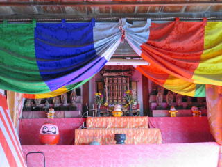 阿弥陀如来の厨子は閉じられているが、脇にたくさんの仏像が安置されている