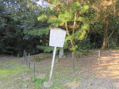 | 街道に戻って先に進むと、右手の民家前に一里塚跡と高札場跡がある。 この辺りでは一里塚のことを 「一里山」 と呼んでおり、石碑にも 「一里山旧址」 と刻まれている。ここは江戸日本橋から数えて70里目の一里塚である。白須賀宿の高札場は、ここ元宿と東長谷に一箇所ずつ設置されたほか 「加宿」 である境宿村にも一箇所設置されていた。 |