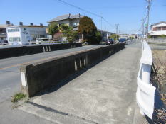 | 続いて西古瀬川に架かる西古瀬橋がある。 この橋も欄干が低く、五六橋と似た造りであるが、ここには歩道橋がない。 |
