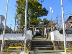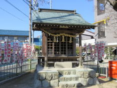 街道に戻って、伝馬町交差点を過ぎ、円六橋交差点の先の横断歩道橋の右手(北)の路地を進むと神明神社がある。 神明神社は、寛文2年(1662)瓦町村の鎮守として神明宮を建立したのが始まりという。 境内には、琴平神社・猿田彦神社・秋葉神社・津島神社が合祀された境内社のほか、山之神社がある。 |